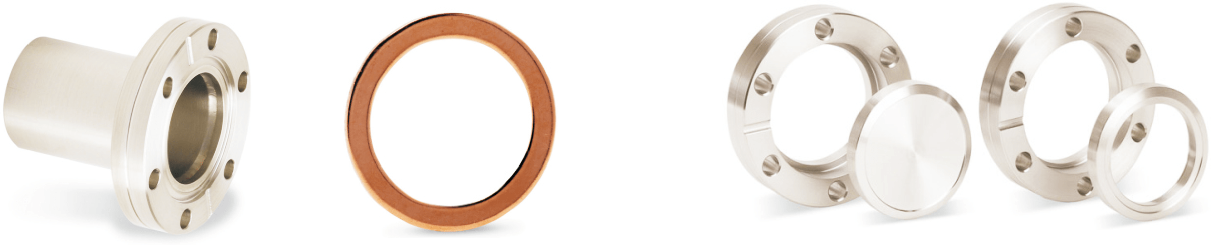 CF 法兰是极高真空系统(超高真空,通常指 10⁻⁷Pa 以下)的专属选择,其最核心的特征的是金属密封结构—— 采用铜垫圈作为密封介质,通过金属与金属的紧密贴合实现极致密封效果。