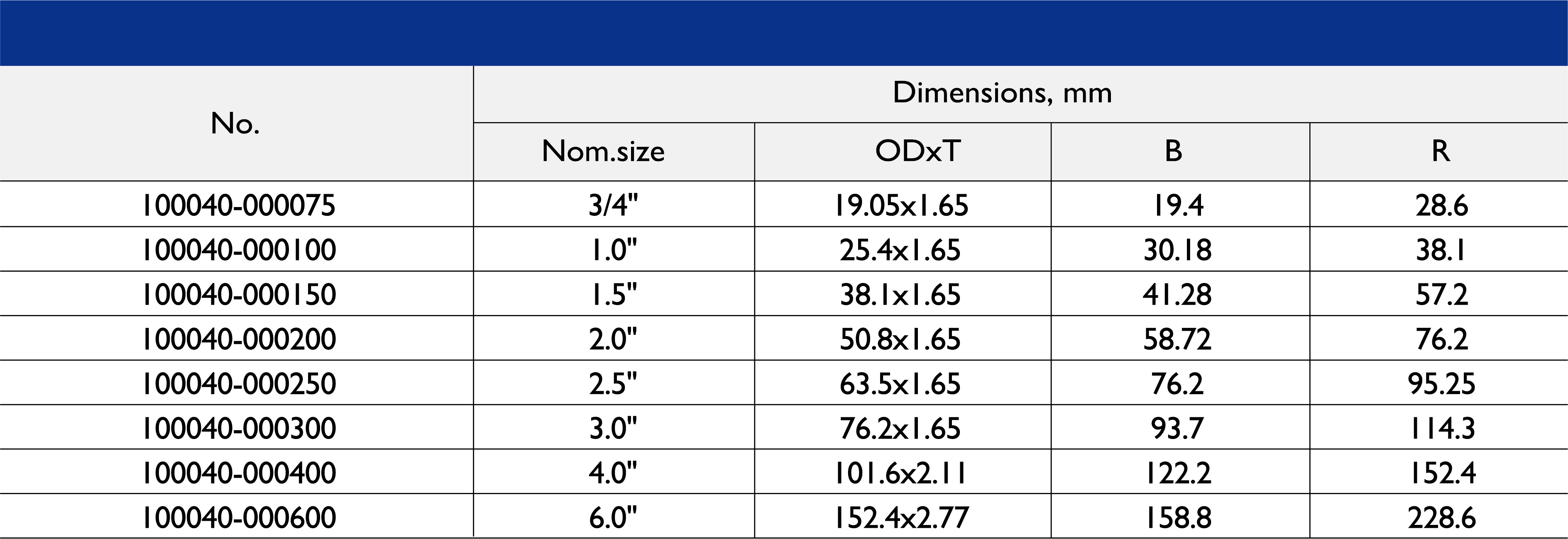 尺寸范围:1/2 英寸至 10 英寸