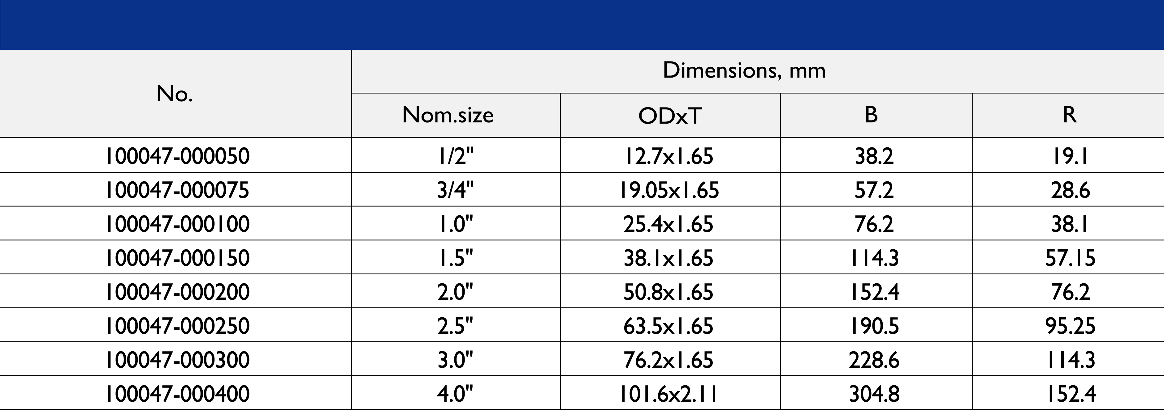 尺寸范围:1/2 英寸至 10 英寸
