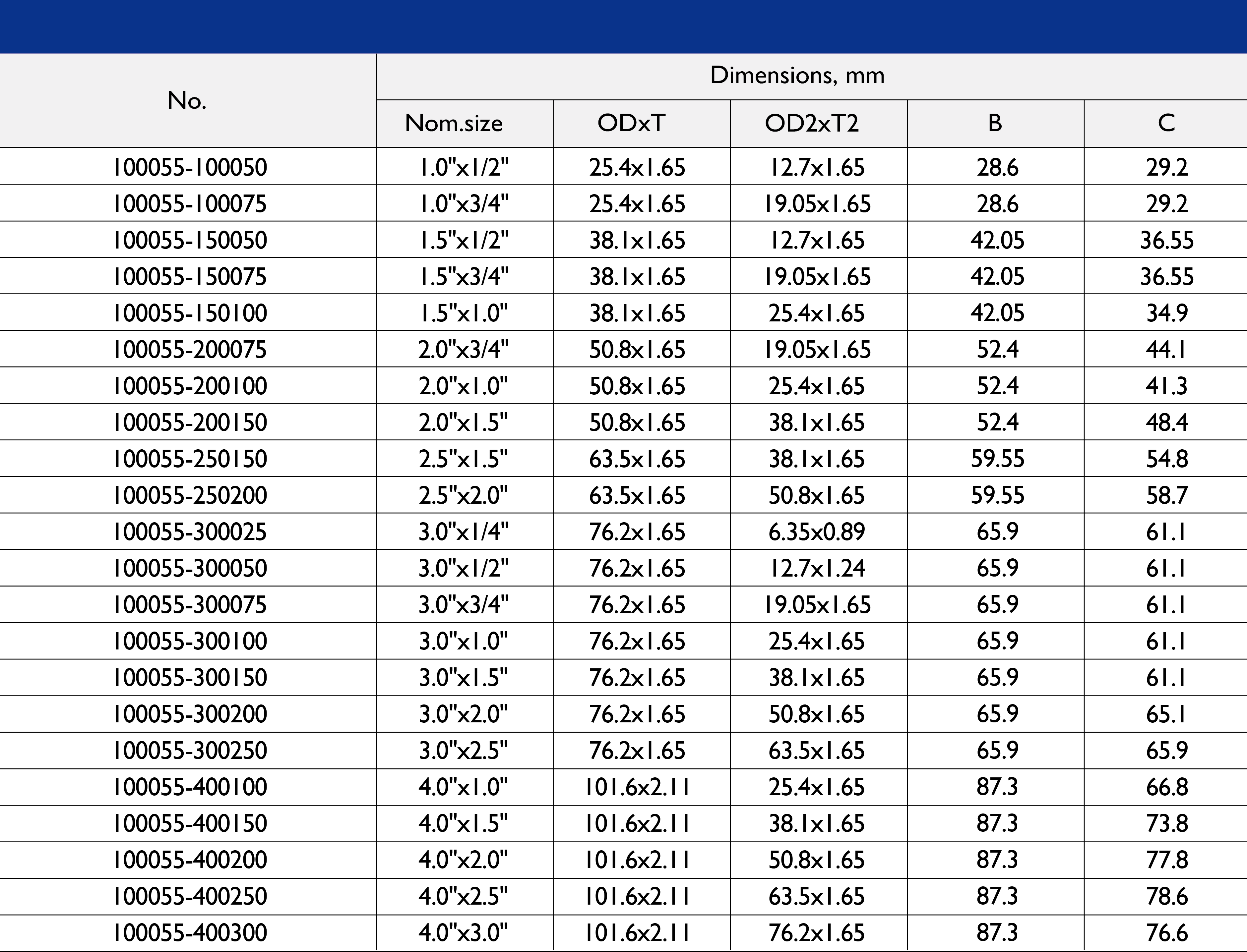 可提供 1/2 英寸至 10 英寸及更大尺寸的产品。