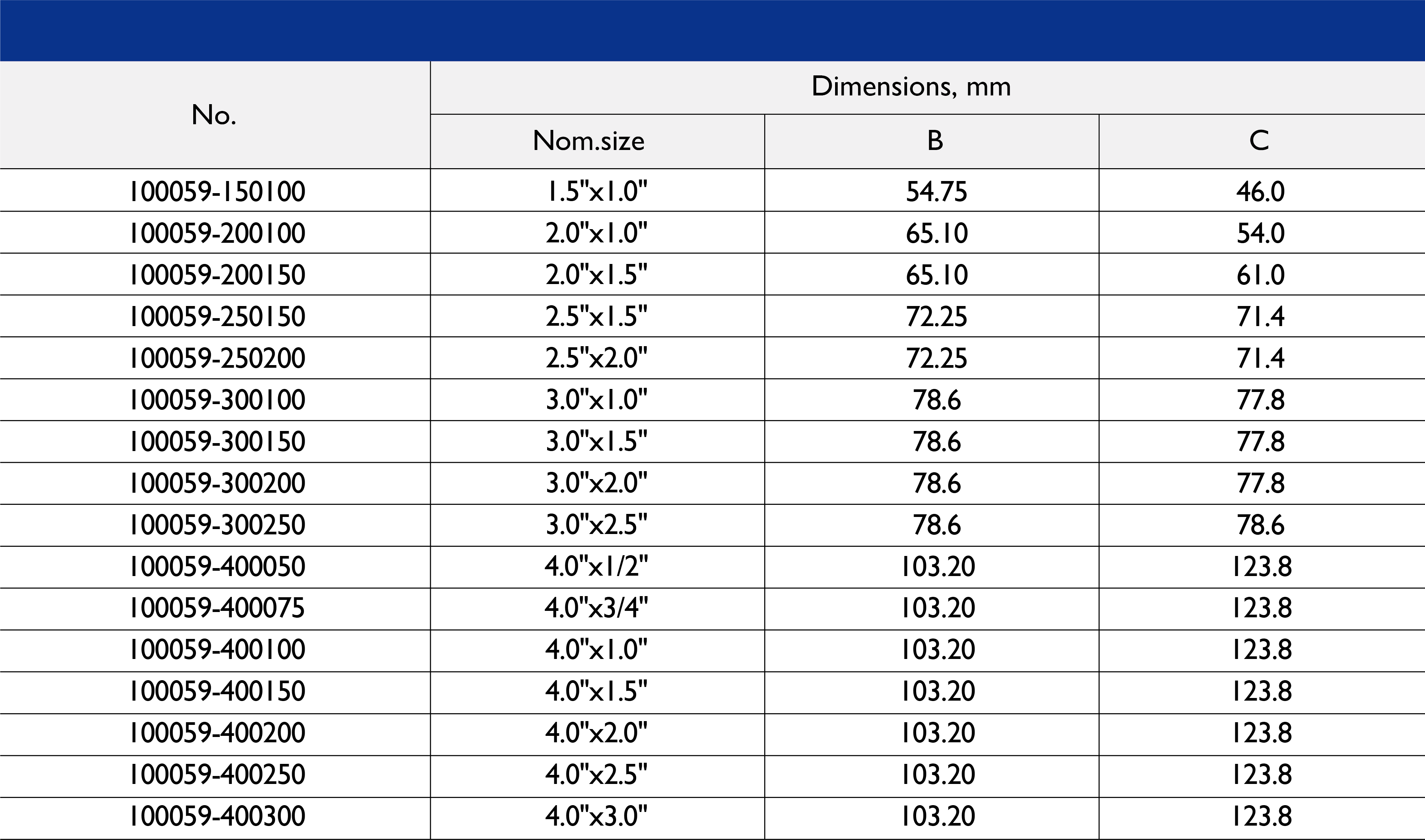尺寸范围:1/2 英寸至 10 英寸