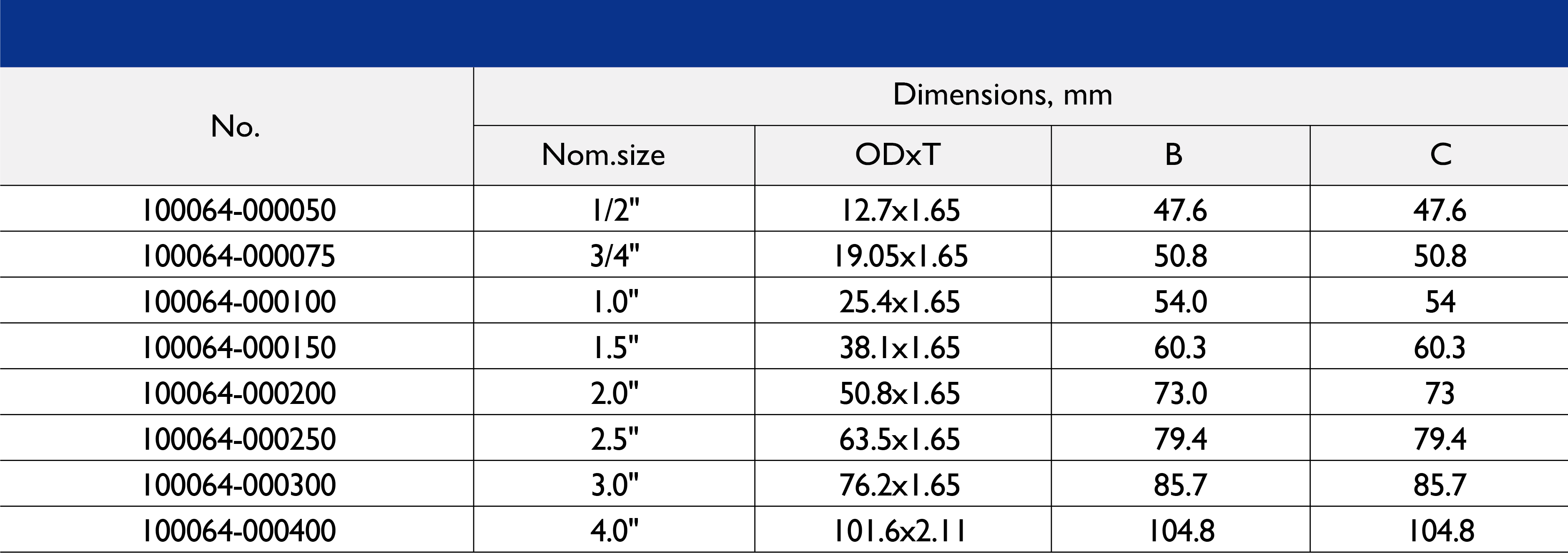 尺寸范围:1/2 英寸至 10 英寸
