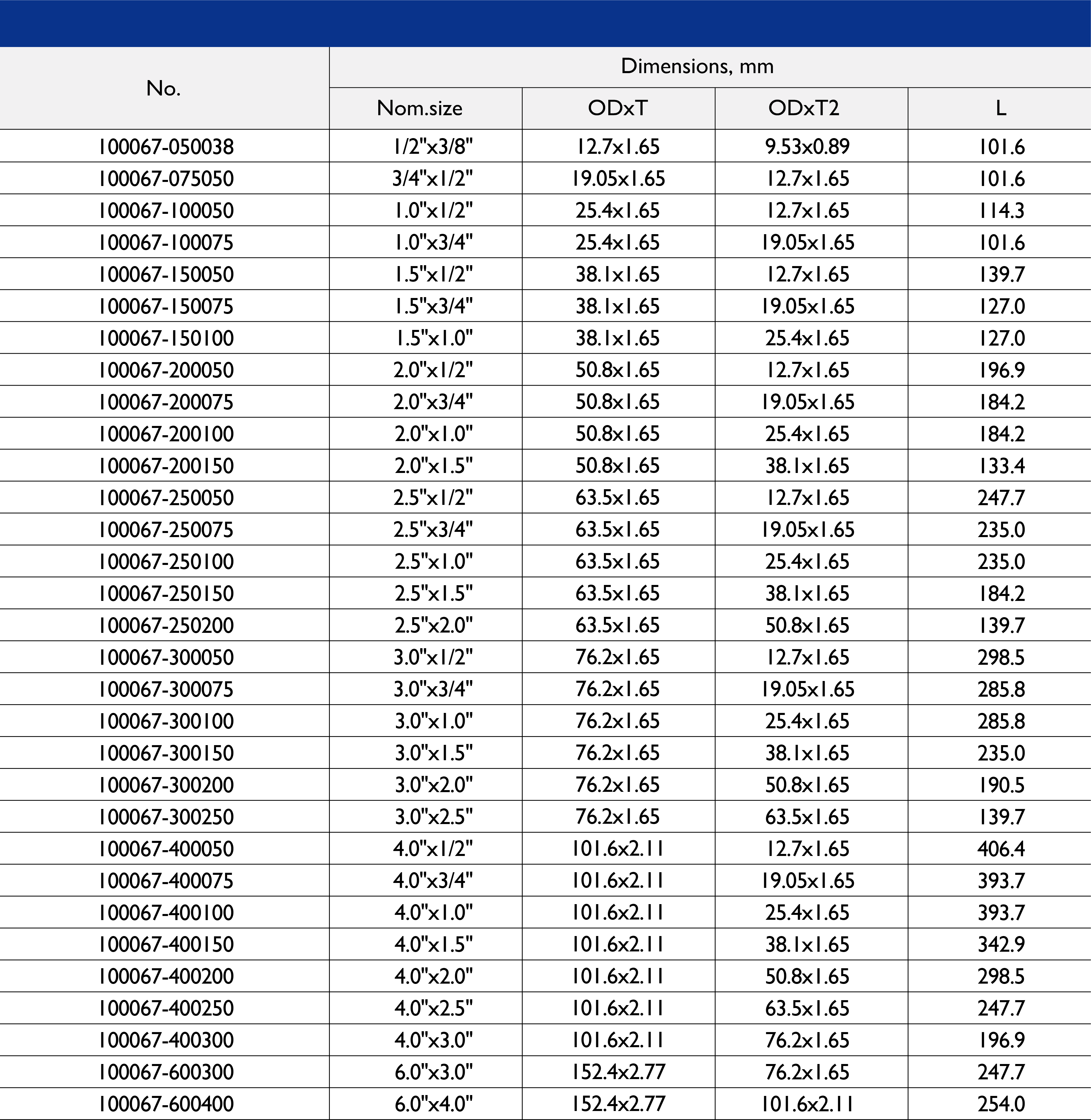尺寸范围:1/2 英寸至 10 英寸