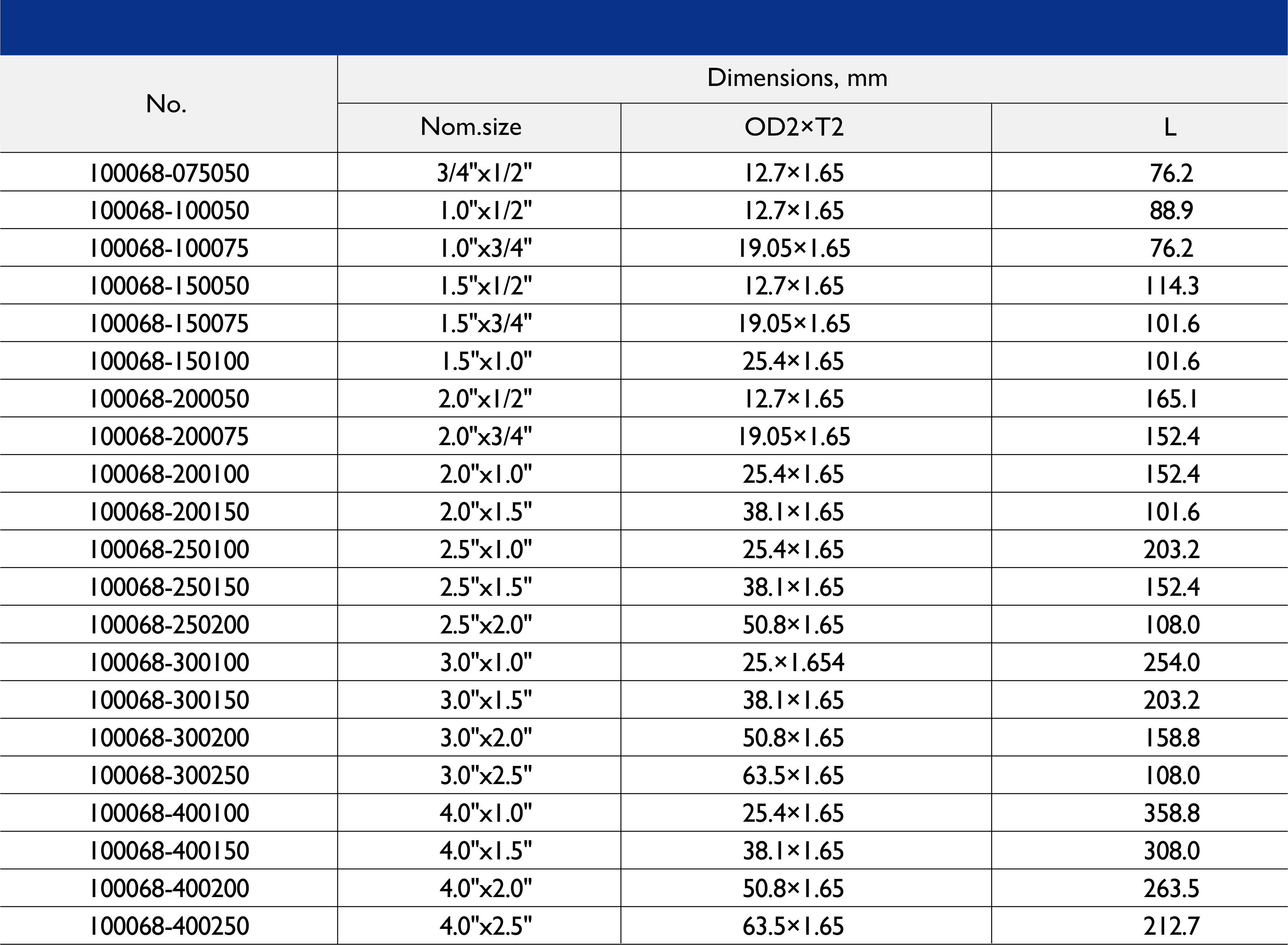 尺寸范围:1/2 英寸至 10 英寸