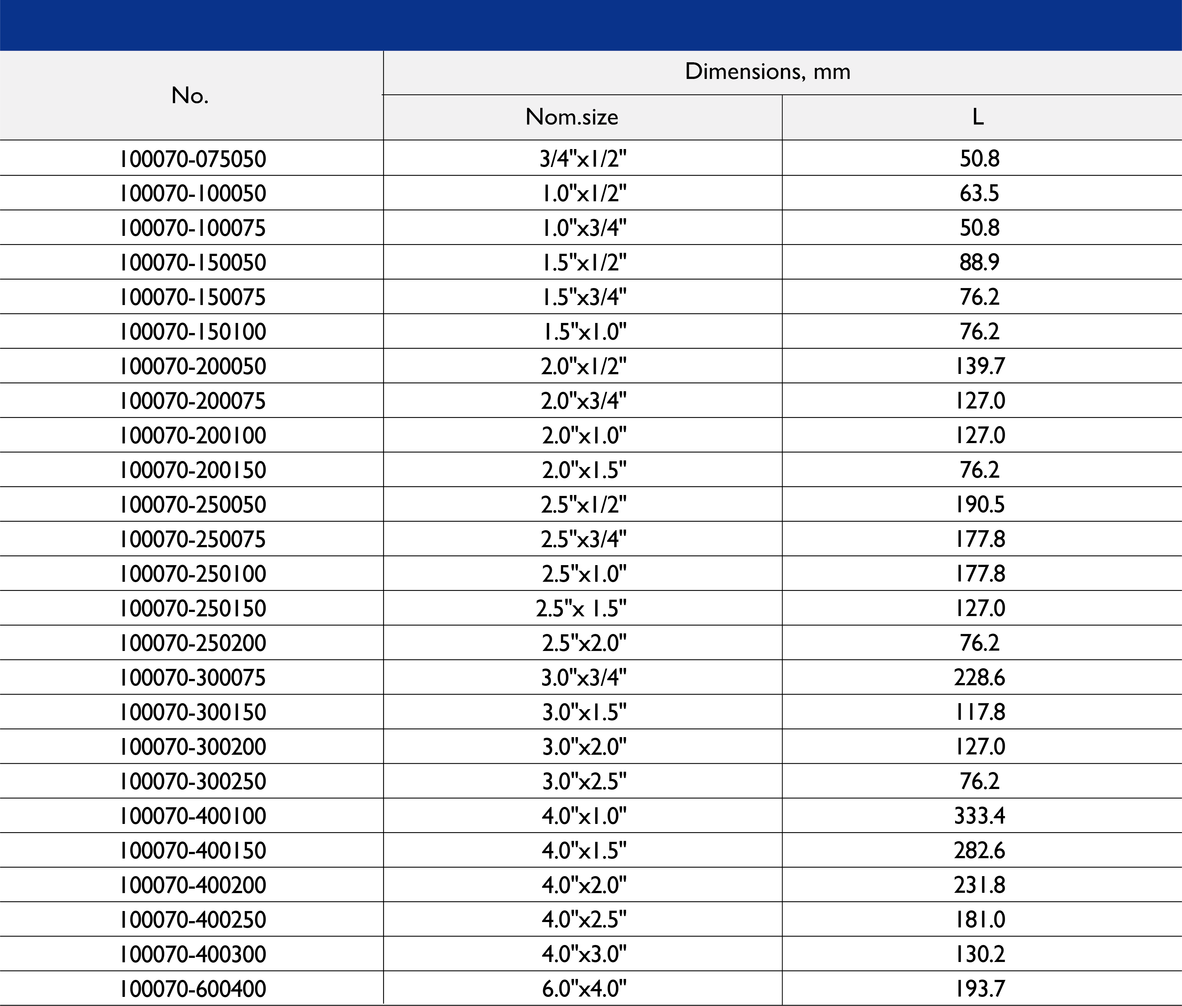 尺寸范围:1/2 英寸至 10 英寸