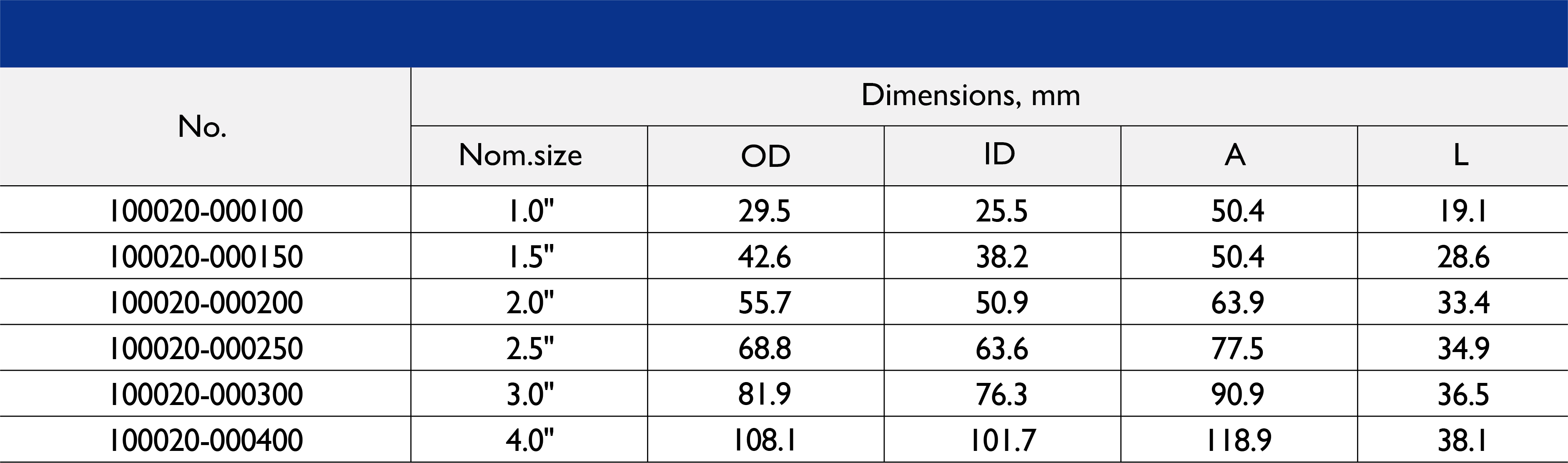 尺寸范围:1/2 英寸至 10 英寸