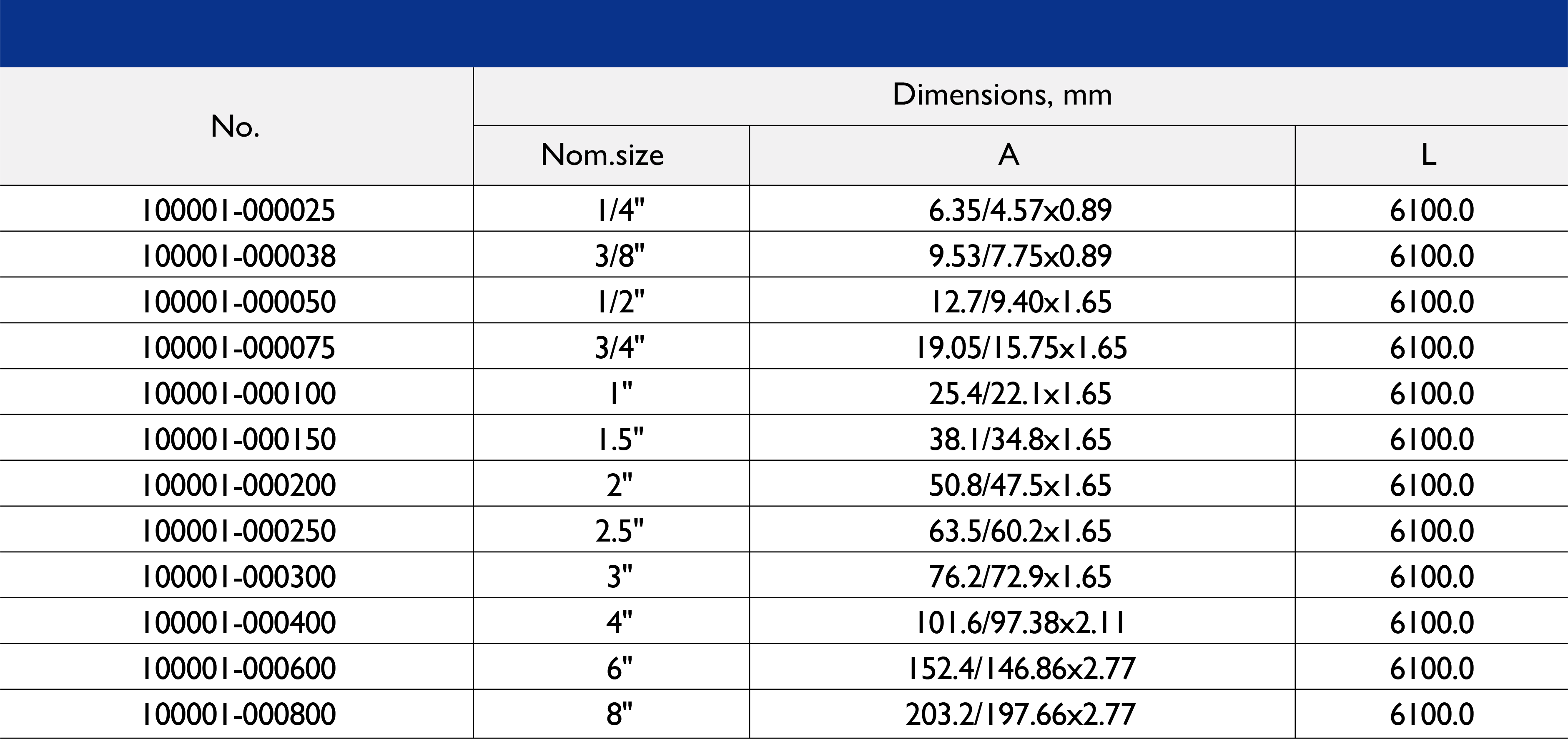 可提供 1/2 英寸至 10 英寸及更大尺寸的产品。