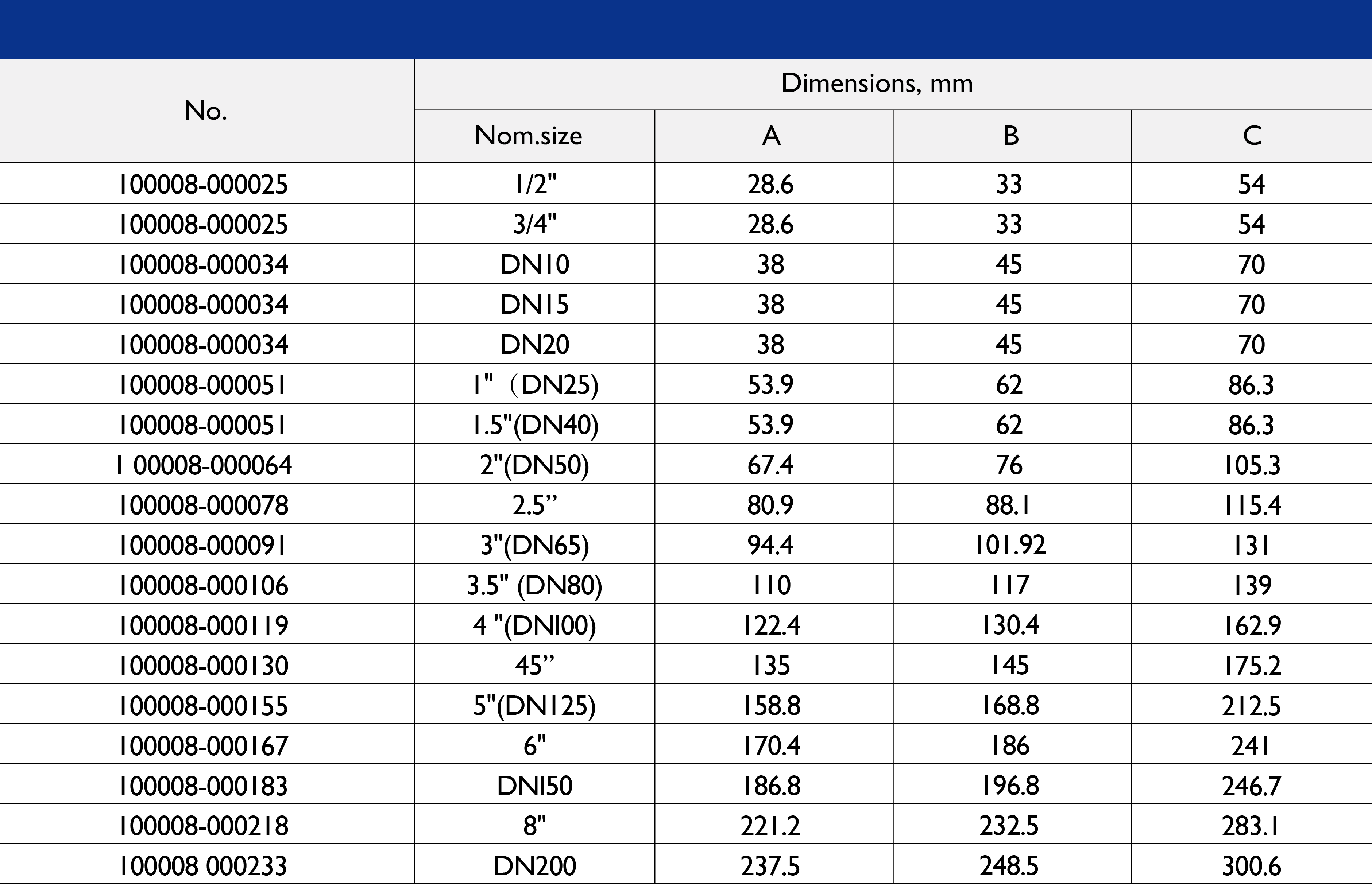 尺寸范围:1/2 英寸至 10 英寸